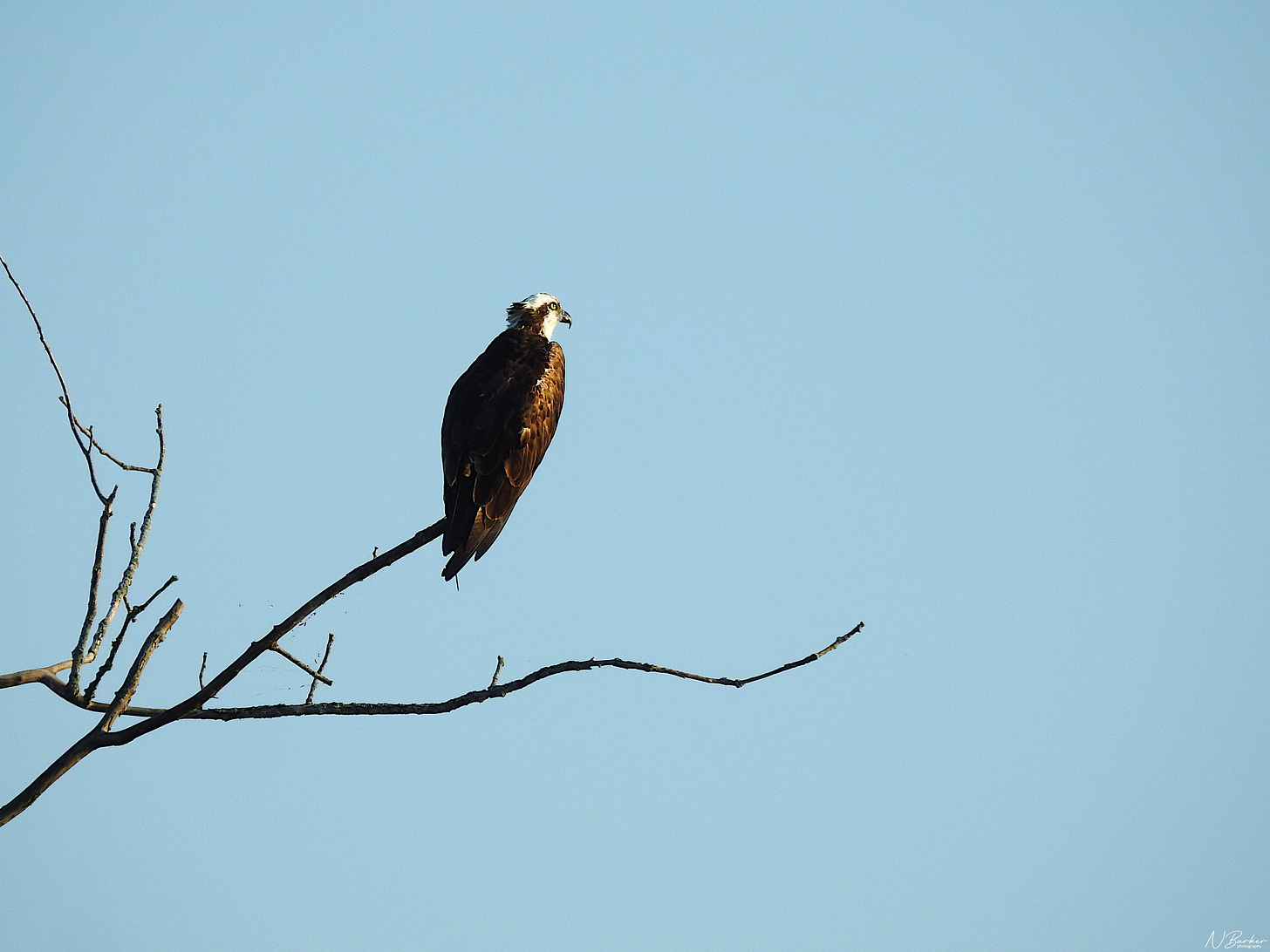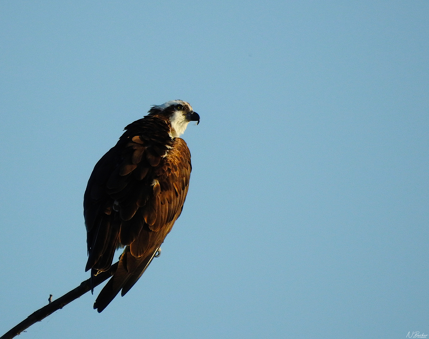 I hiked about 5 minutes further along the shore to get a better look at this Osprey. This Osprey was staring eastward into the rising Sun.